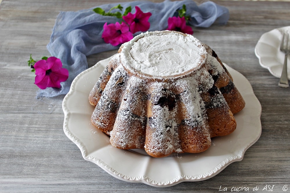En este postre con arándanos, moras y frambuesas he indicado como tiempo de cocción 45/50 minutos porque he elegido poner la masa en un «molde acanalado para budín» como el de la foto