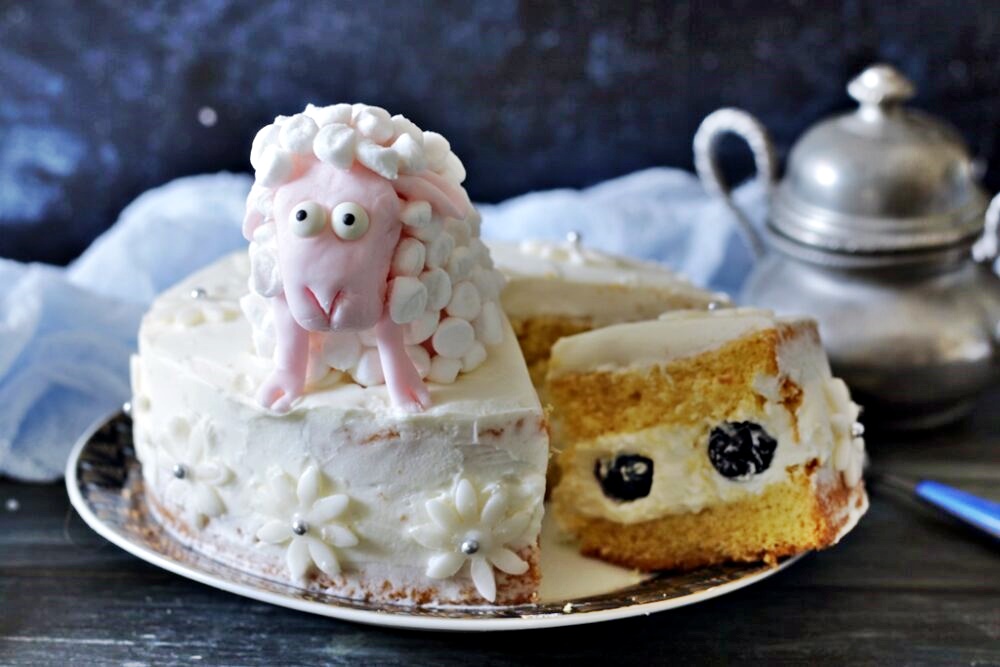 1) La tarta temática de Pascua con oveja de pasta de azúcar puede no ser solo un bizcocho (pan di Spagna), sino también una sponge, una pasta maddalena o una pasta margherita…