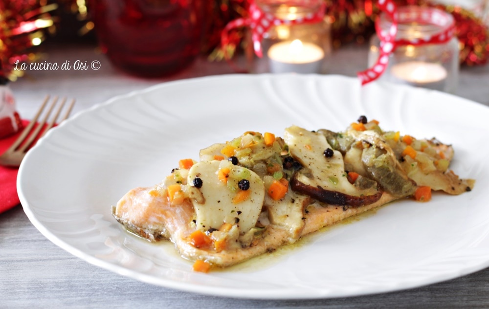 La trucha asalmonada con boletus es un segundo plato de pescado sencillo, sabroso y muy rápido, un plato delicado y elegante que he preparado usando verduritas para sofrito y boletus congelados.