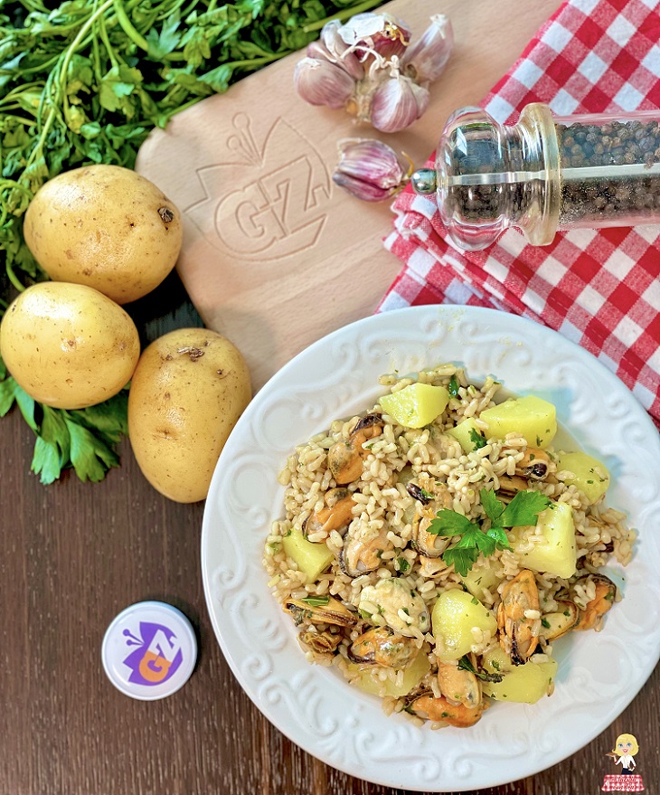 El resultado es, de todos modos, muy similar al original y os permitirá preparar un ARROZ con PATATAS y MEJILLONES cocinado en sartén, cremoso y sabroso.