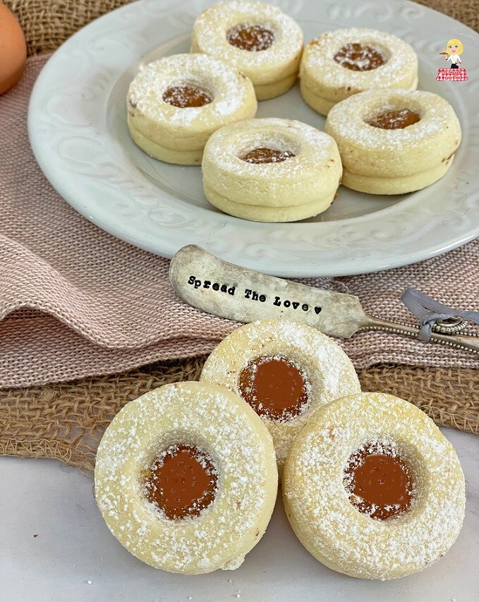 Las galletas ojo de buey son deliciosos dulces de masa quebrada típicos del Tirol del Sur con forma redonda que suelen rellenarse con mermelada de albaricoque, crema pastelera o crema de gianduia.