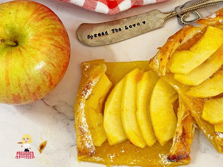 ¿Qué te conquistará de este postre con manzanas? Sin duda, la base crujiente de hojaldre pero también la dulzura de las manzanas horneadas espolvoreadas con azúcar glas, pero el ingrediente que lo hace todo aún mejor es esa fina capa de mermelada de albaricoque escondida bajo las rodajas de manzana.