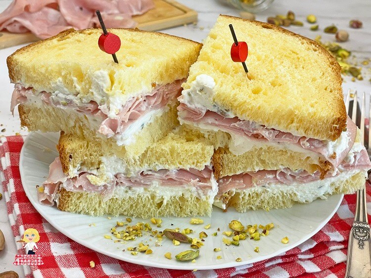 Los Mini Sandwich de Mortadela son bocadillos que aprovechan la combinación ganadora entre el sabor delicado pero sabroso de la Mortadela y el más decidido del queso de cabra, con la adición de pistachos para una nota crujiente, todo untado sobre rebanadas de pan.​