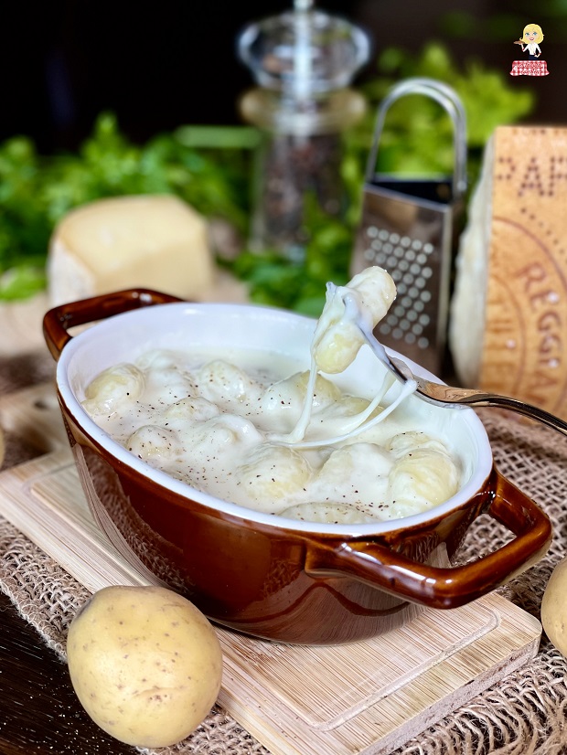 Preparar la receta de los ñoquis a la bava es absolutamente fácil y rápido y no requiere habilidades especiales en la cocina, siempre que respetes unas pocas y sencillas reglas para evitar el error inevitable que está a la vuelta de la esquina: que el queso se deshilache, ¡y en ese caso es irrecuperable! Pero no os preocupéis, a continuación os explicaré en detalle cómo fundirlo y evitar el problema.
