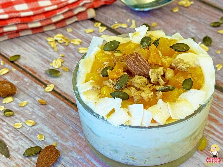 Hoy os presento esta receta para un Desayuno con Copos de Avena, Leche y Yogur Griego una especie de Porridge pero sin cocción que se prepara en muy poco tiempo, rico en energía y sabor: el PORRIDGE OVERNIGHT OATS al Mango.