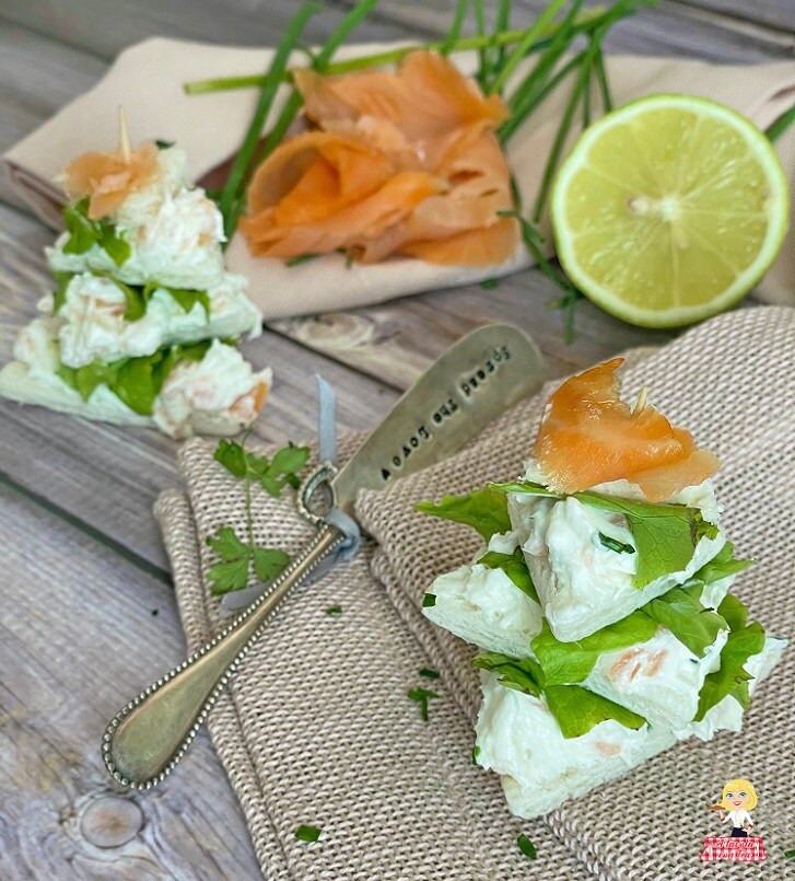 En esta receta hemos rellenado los sándwiches con la Mousse de Salmón, pero también puedes reemplazarla con la Mousse de Mortadela, Paté de Aceitunas, Salami y Mayonesa, Pesto de albahaca genovés mezclado con queso cremoso o incluso con Paté de Foie Gras.