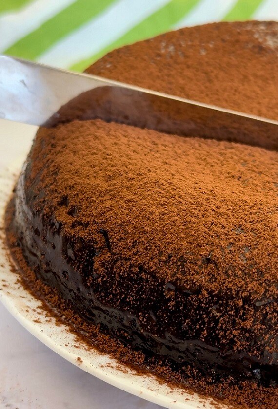 Una vez sacada, solo tendrás que dejarla templar, mientras tanto prepara un Glaseado de Chocolate Negro o con Leche, luego glasear y estará lista para ser servida, esponjosa, húmeda en su punto justo e irresistible.