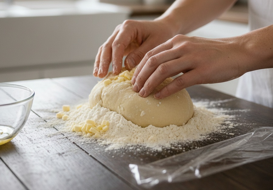 Preparar la crema en el fuego permite liberar por completo los aromas del limón y la vainilla, mientras que amasar la masa a mano garantiza que la mantequilla no se caliente en exceso, manteniendo la base perfecta.
