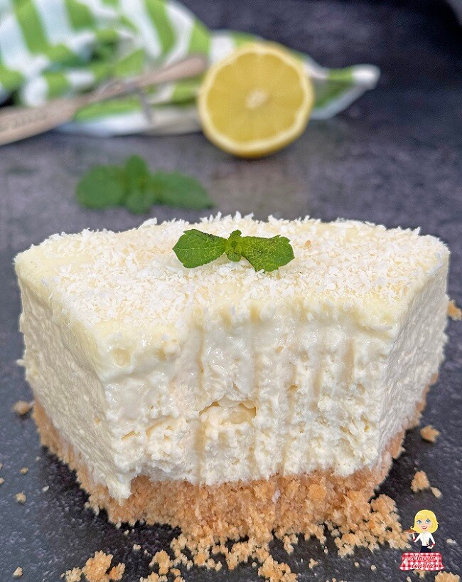 Una receta fácil y rápida de preparar, con una textura cremosa, a base de ingredientes sencillos como galletas desmenuzadas, mantequilla, yogur, coco rallado, queso crema y chocolate blanco.