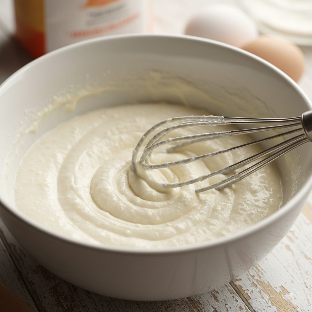 Añade los huevos enteros, uno a uno, a la mezcla de ricotta. Mezcla bien con el batidor tras cada incorporación hasta que los huevos estén completamente integrados y la mezcla quede homogénea.