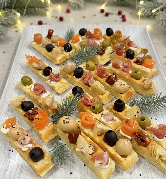 Waffles salados APERITIVO DE NAVIDAD con rellenos variados