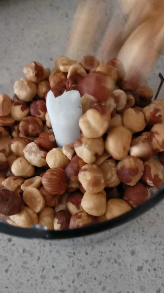 Toma las avellanas, yo he utilizado aquellas ya peladas de Piamonte.