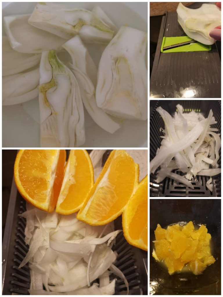 Para preparar la ensalada de hinojo y naranja, empezad lavando bien los hinojos y retirando las partes más duras.