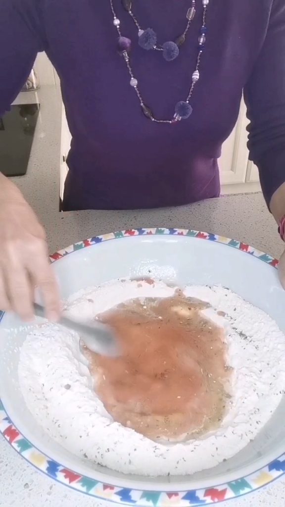 El primer paso a realizar es verter la harina en nuestra mesa de trabajo o en nuestro recipiente. Yo tengo uno muy grande, en el cual a menudo puedo trabajar la masa sin problemas. Junto con la harina, añadimos también la sal y la levadura y mezclamos. Hacemos un agujero en el centro de la harina y añadimos a continuación nuestros líquidos: el agua, el aceite, el vino blanco, el orégano y el concentrado de tomate.