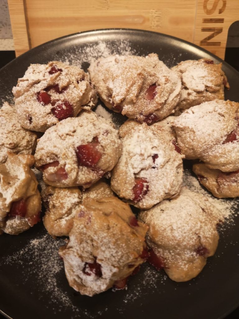 Se hacen con pocos ingredientes naturales: ricotta, fresas frescas y harina tipo 2, que aporta a la masa una textura rústica y delicada.
