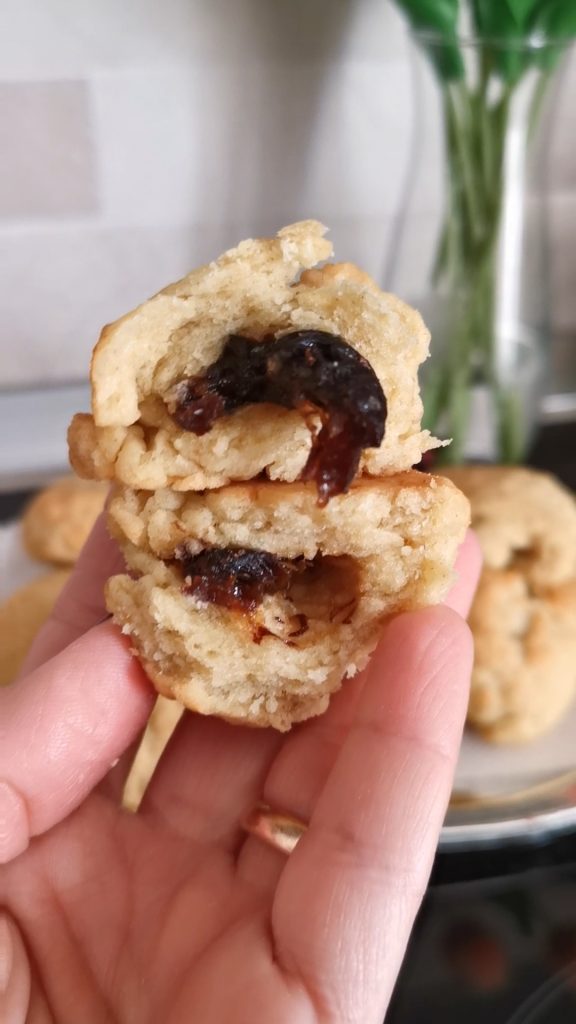 Las galletas con ciruelas son dulces quebradizos con un corazón suave de fruta seca.