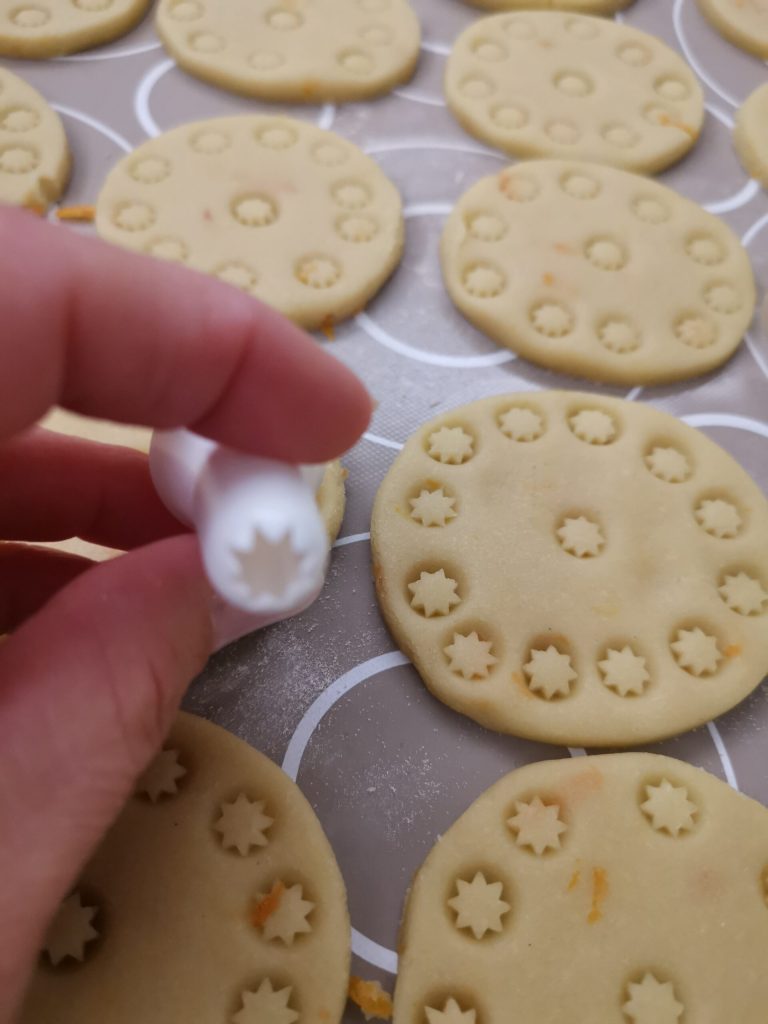 He cortado las galletas con un molde redondo.