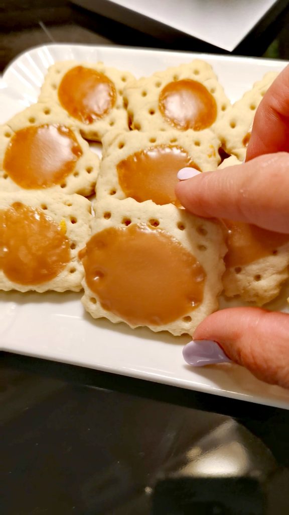 En este punto, quise hacer más sabrosas mis galletas de pastelería fina, colocando en el centro una cucharadita escasa de pudin de caramelo.