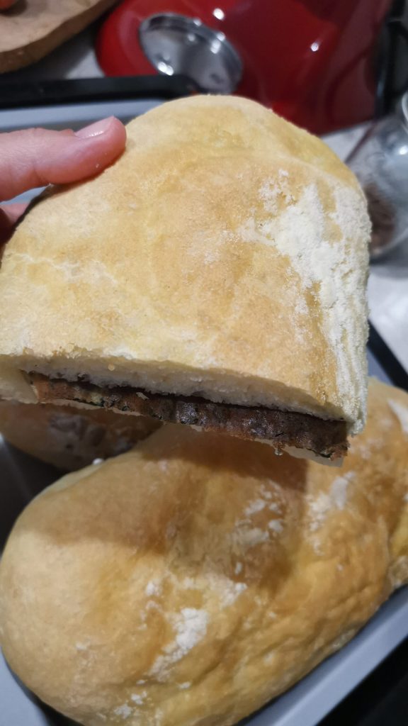 Coloco el pan en bandejas y espolvoreo la superficie con harina de sémola y un chorrito de aceite. Vuelvo a dejar fermentar las formas durante aproximadamente otra hora y media.