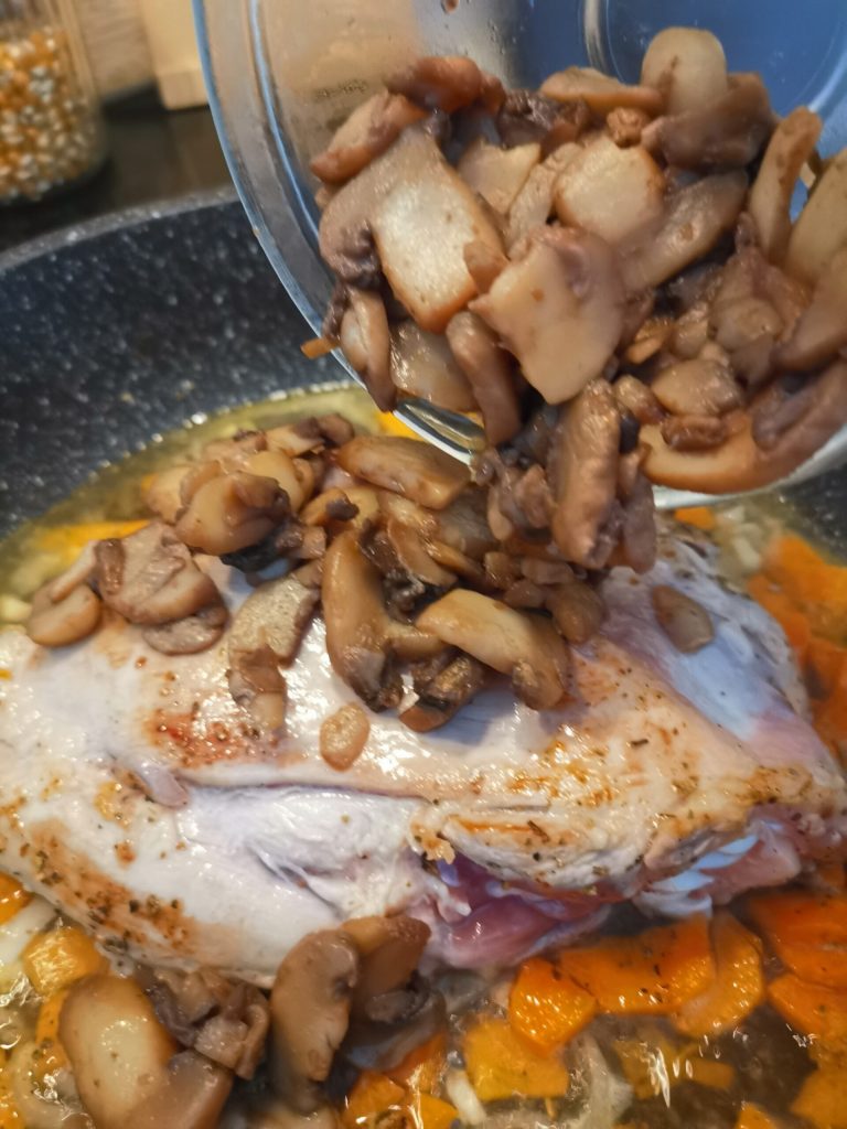 Espero que queráis probar esta deliciosa receta de la parte superior del muslo de pavo con col y champiñones. Un poco diferente para llevar a la mesa y disfrutar con familia y amigos.
