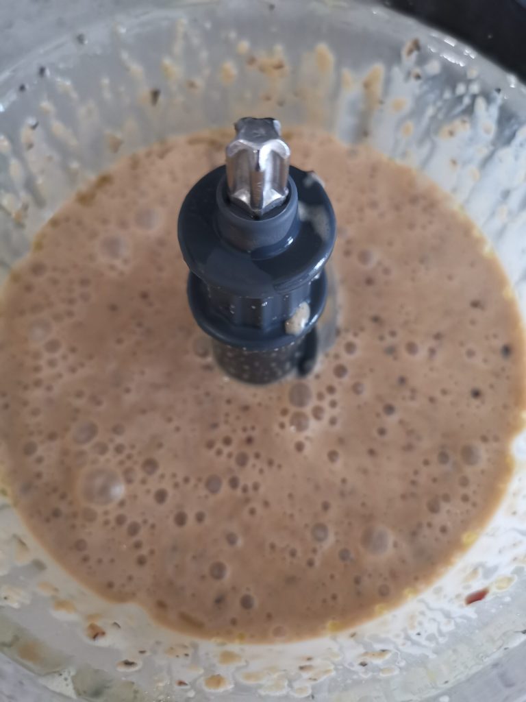 Si el vaso donde batéis es pequeño, trasladad la masa de la tarta a un bol y continuad mezclando allí.