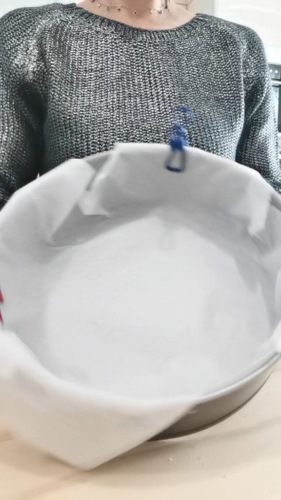 • Tomad un molde de 22 cm de diámetro y forradlo con papel de horno.