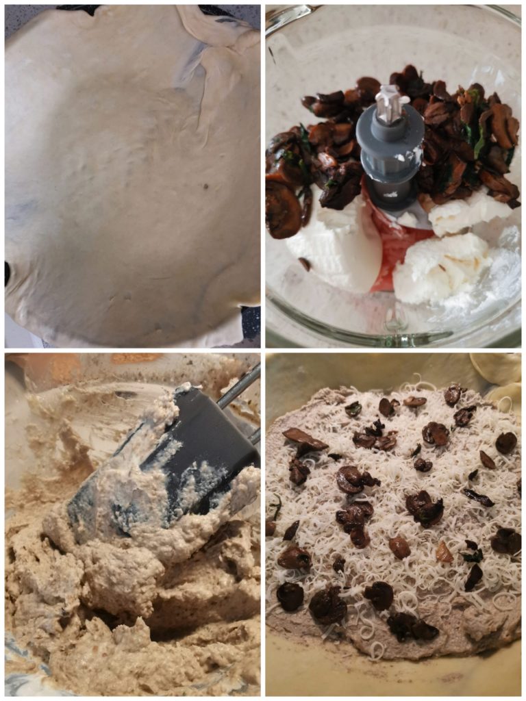 En el vaso de la picadora mezcla la ricotta con una parte del parmesano, mortadela y una parte de los champiñones ya fríos.