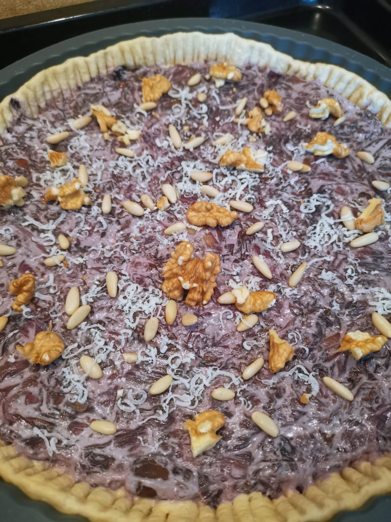 La tarta salada de radicchio es una preparación que podéis disfrutar como plato único o servir en un buffet de entrantes y delicias sabrosas.