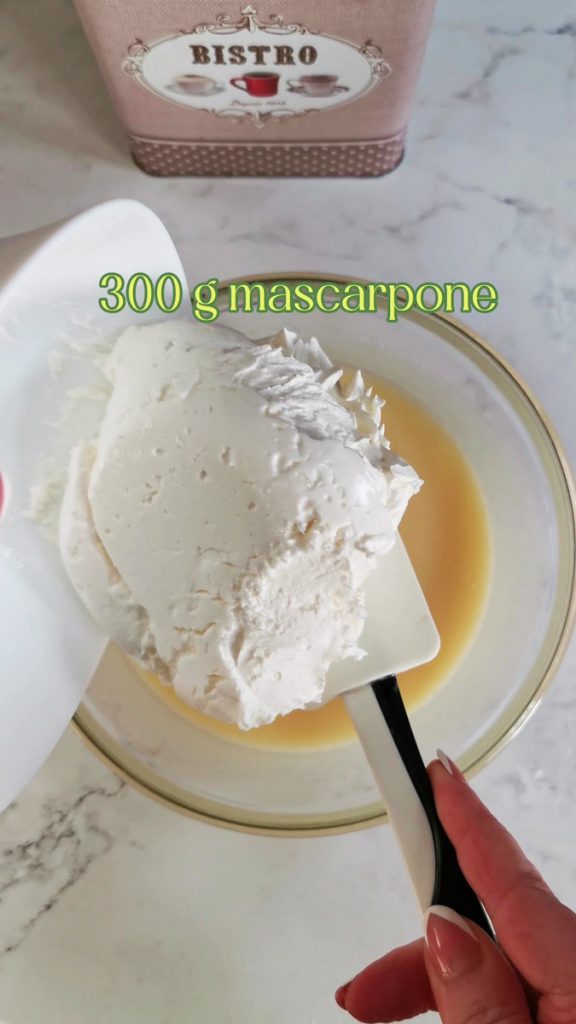 Una vez enfriado añadimos el mascarpone y montamos con la batidora eléctrica durante un par de minutos, hasta obtener una crema lisa y aterciopelada.
