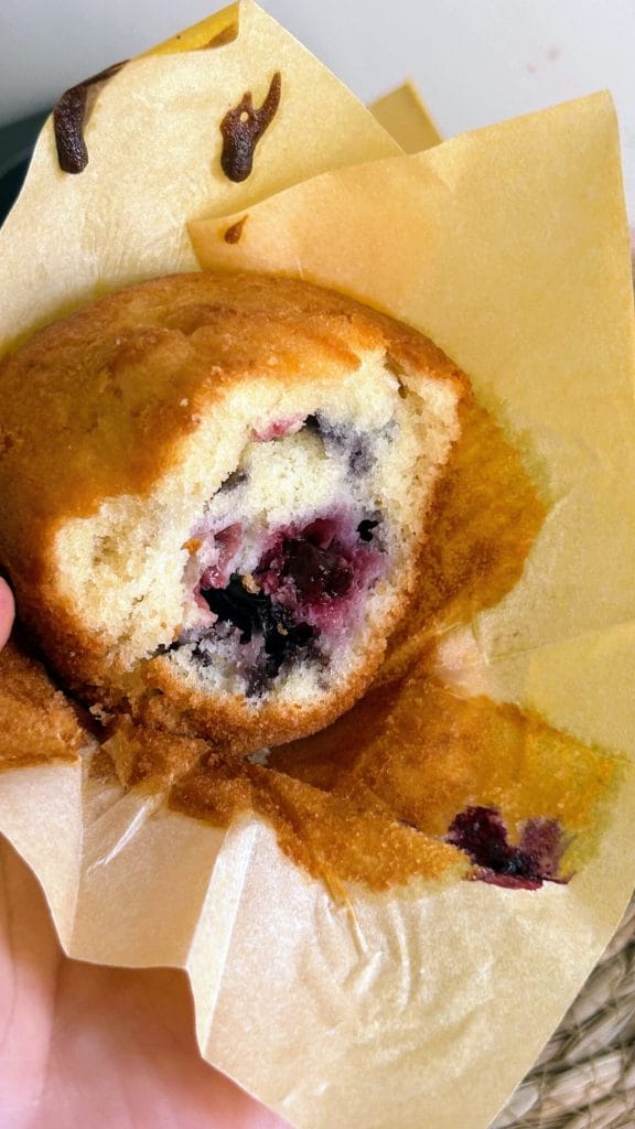 Añade 1 cucharada de harina más si la masa te parece demasiado líquida (también depende de los arándanos).