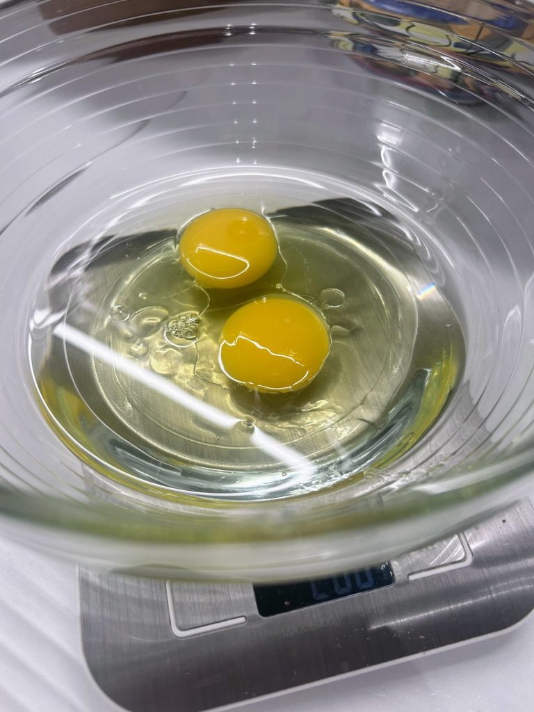Introduce el aceite y los huevos en un bol grande y mezcla enérgicamente con un tenedor hasta crear una emulsión.