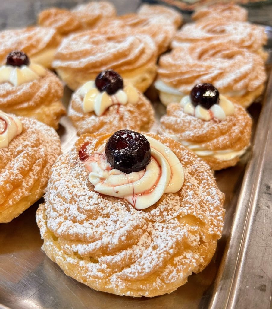 Estos dulces se realizan con una pasta choux (una masa ligera y esponjosa) y pueden ser rellenos con crema pastelera y decorados con una cereza o una guinda.