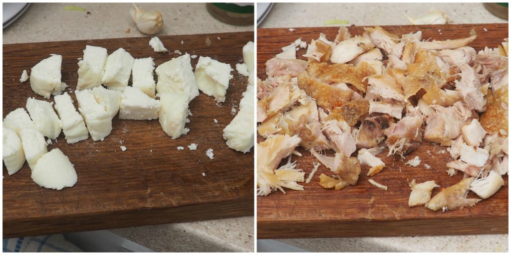 • Corten tanto el paneer como el pollo previamente hervido o cocido a la plancha en daditos más bien pequeños.