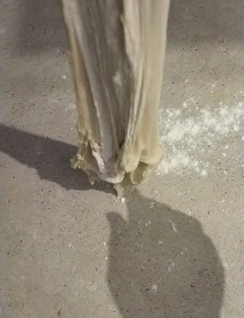 • Vierte la masa sobre una superficie de trabajo enharinada y trabaja rápidamente.