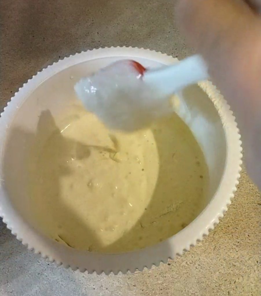 Una vez bien mezclados los ingredientes, vierte la mezcla en el molde de bizcocho de 25 cm de diámetro.
