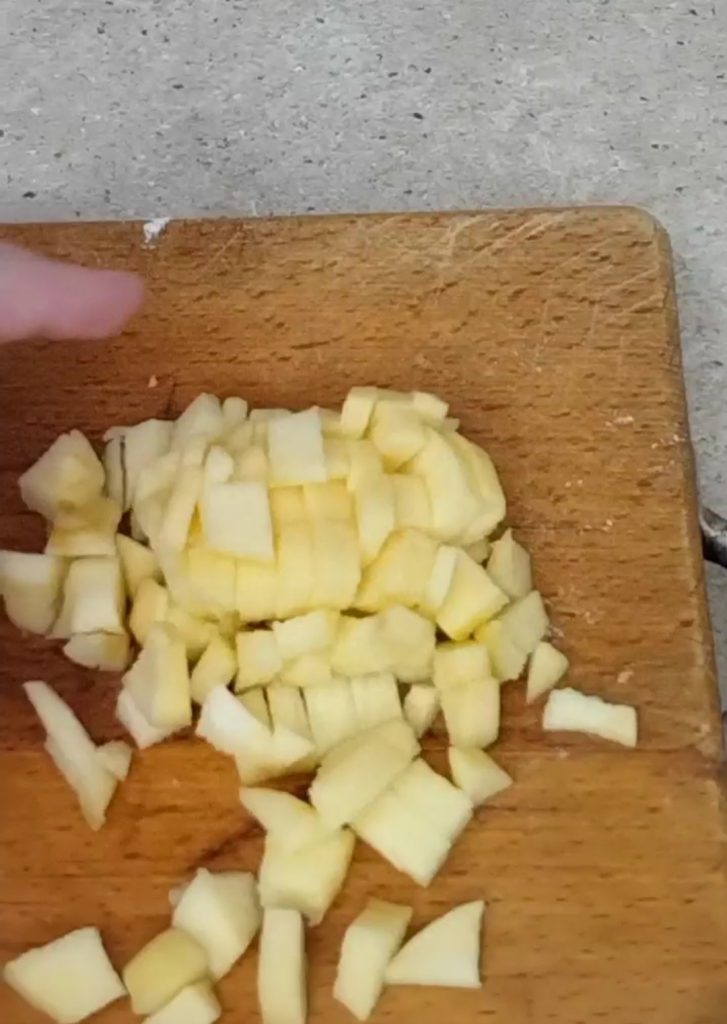 Lava, pela y corta la manzana en trocitos bastante pequeños.