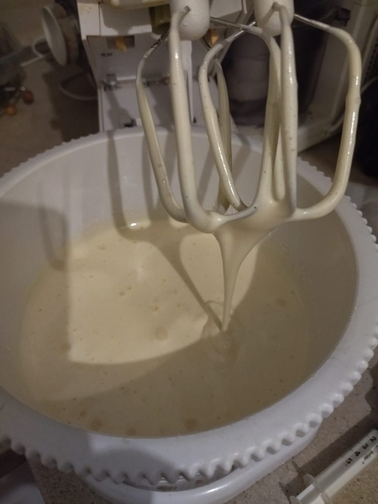 Ahora añade la fécula de patata y bate siempre con la batidora, hasta amalgamar bien los ingredientes.