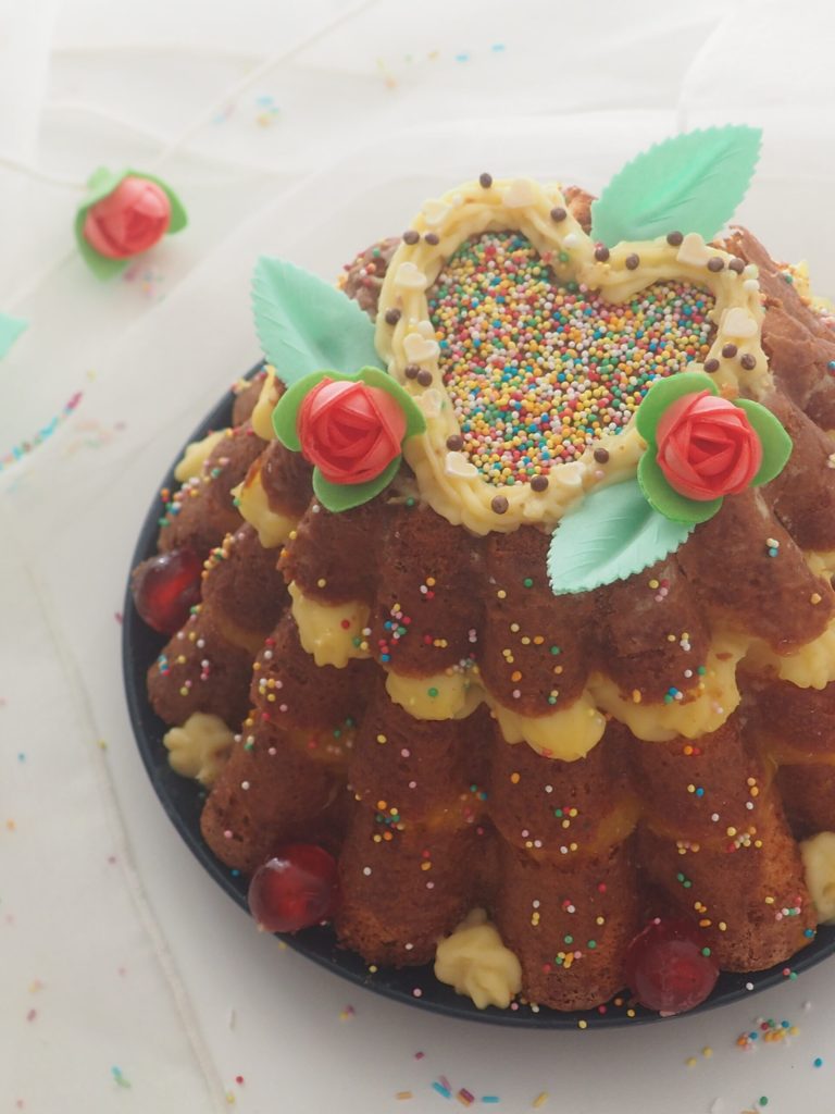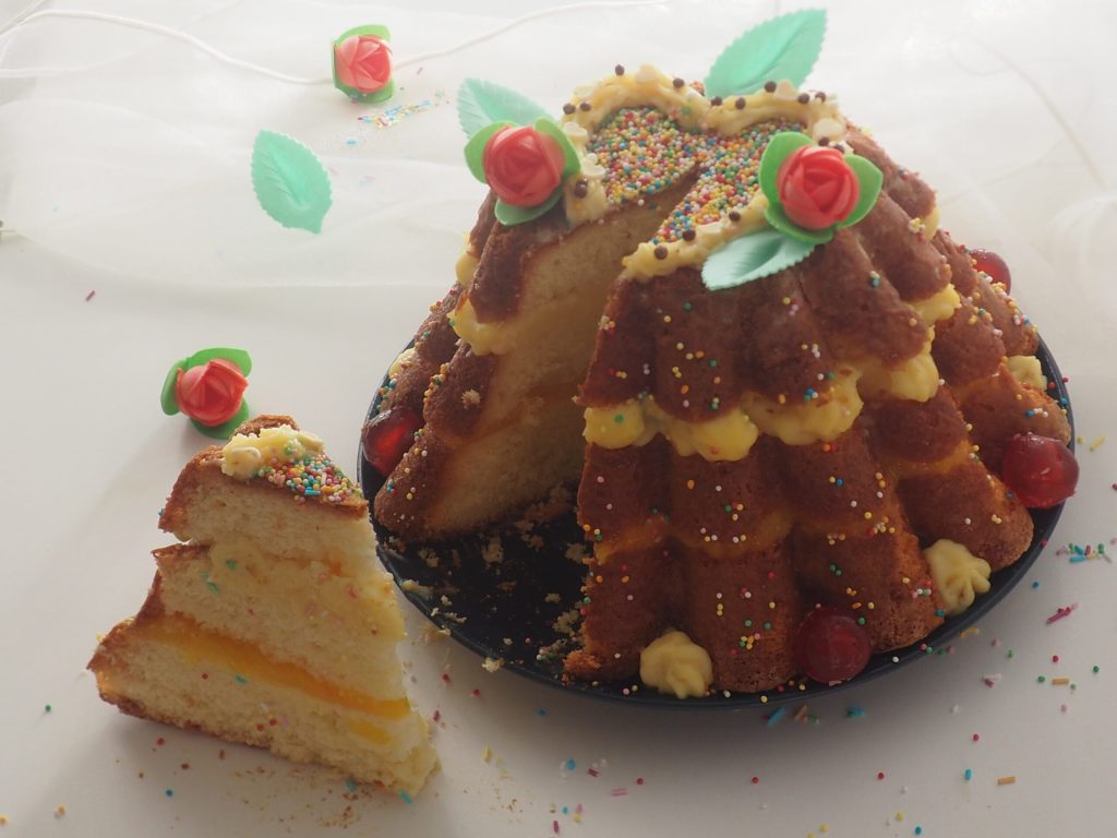 Bizcocho relleno de gelatina de naranjas y crema de limón
