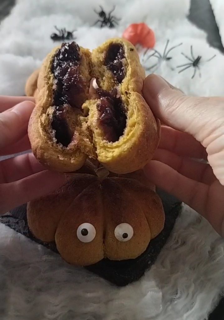 Te recomiendo usar una mermelada muy densa, compacta, para evitar que las calabazas se humedezcan demasiado durante la segunda fermentación. Si quieres, puedes prepararlas también sin relleno.