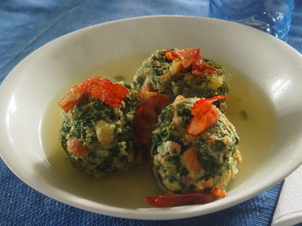 Canederli con salsa de parmigiano y panceta