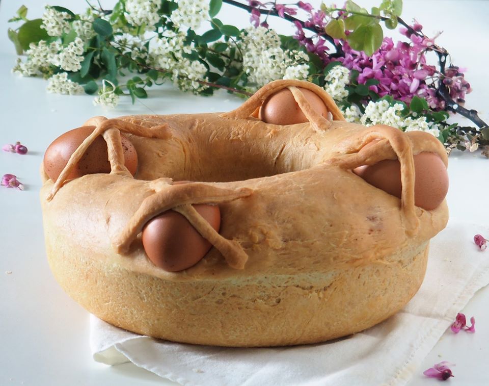 Lavad bien los 4 huevos y colócalos encima del casatiello.