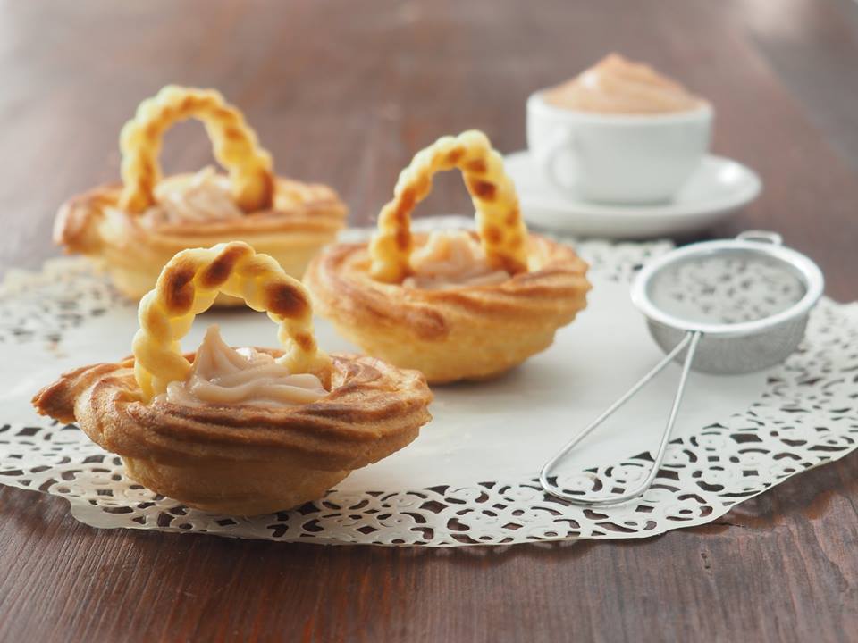 Cestas de pasta choux al horno con crema pastelera de amarena