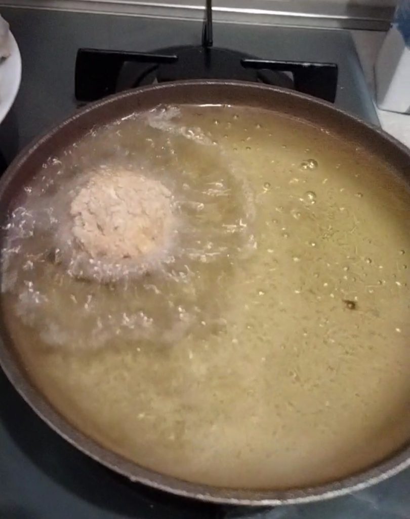 Para estar seguro de que el aceite está a la temperatura adecuada, pon un poco de empanado dentro, si sube a la superficie inmediatamente, puedes proceder