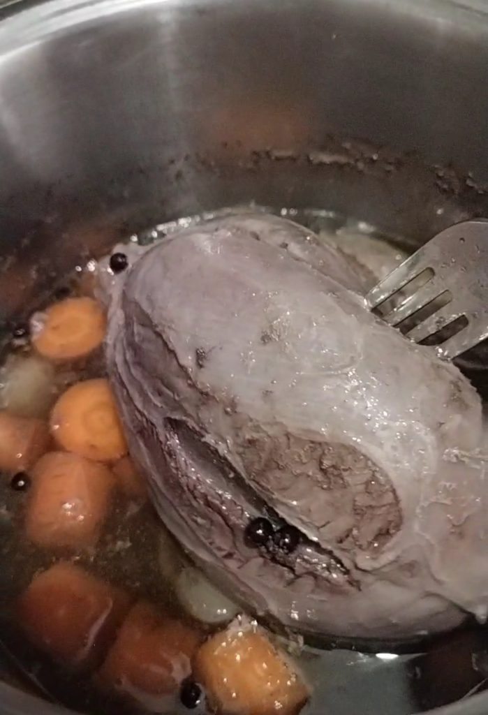 Para el cocido se utiliza sumergirlo en agua caliente si queréis que los jugos permanezcan en el interior, pero si utilizáis una buena carne de esta manera también obtendréis un excelente caldo.