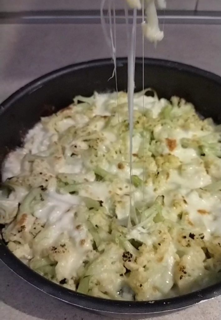¿El plato más cremoso que verás hoy? ¡Aquí está! Coliflores gratinados súper cremosos con parmesano y mozzarella, horneados y luego gratinados en la superficie con el grill. ¡Y además son sin bechamel!