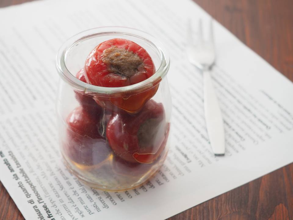 Limpia bien los pimientos con un trapo húmedo, corta el tallo (ten cuidado de no perforarlos) y colócalos en un tarro de vidrio cubriéndolos bien con vinagre (la cantidad depende del tamaño del tarro y de los pimientos). Déjalos reposar durante 10 días.