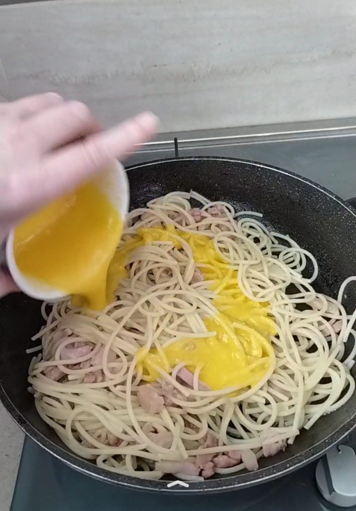 Para evitar el efecto tortilla, os recomiendo apagar el fuego antes de verter la mezcla de huevos. Mezclad de inmediato y, si es necesario, añadid un poco de agua de cocción de la pasta.