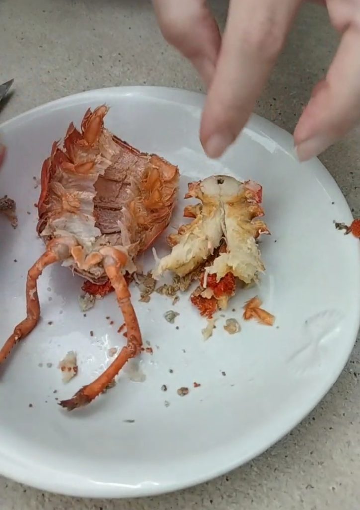 Para este plato he usado un bogavante congelado, que especialmente en el período de Año Nuevo se encuentra en oferta, pero también podéis usar frescos.