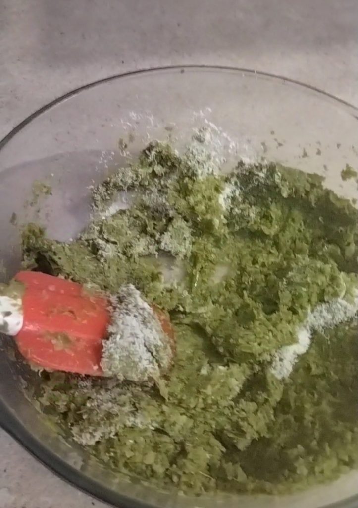 Vierte todo en un bol, añade el parmesano, el yogur, los huevos y el pan rallado. Ajusta de pimienta y sal.