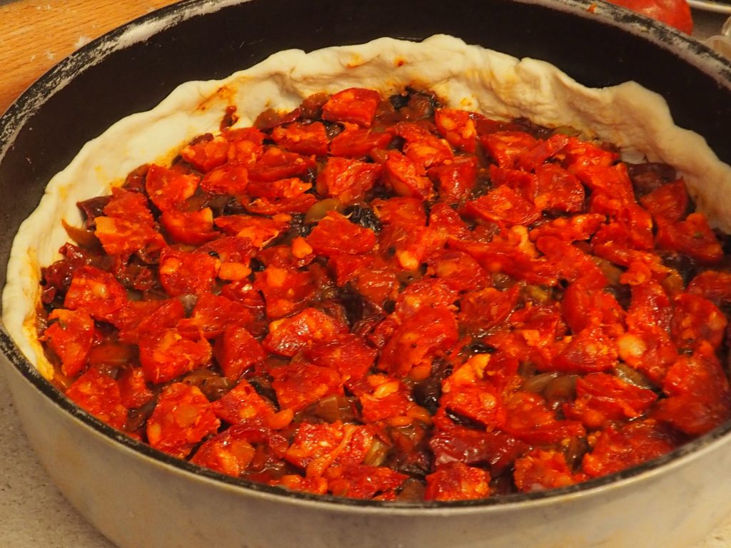 Si queréis la versión vegetariana, en lugar de embutido, añadid algunas aceitunas negras.